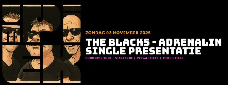 Wat: Singlepresentatie The Blacks: Adrenalin Waar: Podium De Piek Vlissingen Wanneer: Zondagmiddag 2 november om 14:30 uur Entree: gratis Op zondagmiddag 2 november  houden The Blacks samen met label MR.DJD Records hun singlepresentatie in Podium De Piek Vlissingen. Dit legendarische podium en jongerencentrum bestaat al vanaf 1970. Het jongerencentrum draait helemaal op vrijwilligers en weet steeds gerenommeerde bands naar Vlissingen te krijgen. Eddy &The Hotrods, Mark Foggo & The Skasters, Nico, Herman Brood enz.. En dan nu The Blacks…. In het verleden heeft Teye al met ODNT in Middelburg gestaan en in Vlissingen met Freetown op Dijkpop, 3x in PhantaRhei en in Groen Licht dus de hoogste tijd om nu met zijn nieuwe band JC De Piek aan te doen…. https://depiek.nl/nl/Programma/0iiMLqRQJTg6/The-Blacks-Adrenalin-Single-presentatie.html